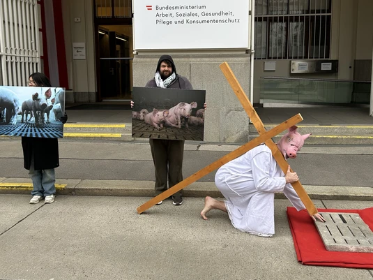 VGT zeigt Kreuzweg des Schweins vor Landwirtschaftsministerium: Vollspaltenboden bleibt