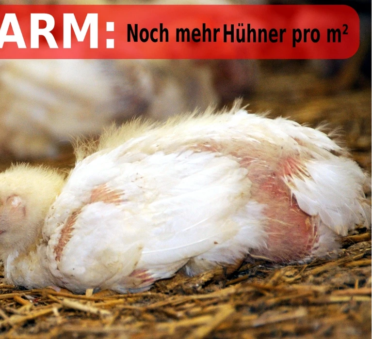 All diese Faktoren, die dem Leben der Hühner jetzt schon so schwer zusetzen, würden sich durch eine weitere Anhebung der Besatzdichte um fast ein Drittel, drastisch verschärfen.
