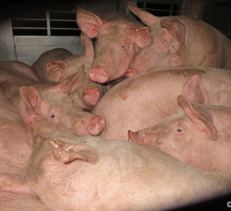 VGT deckt auf: Schweine aus deutschen Großbetrieben werden als Vorarlberger Schweinefleisch verkauft. Tiertransportgesetz mehrfach gebrochen, VGT erstattet Anzeige!