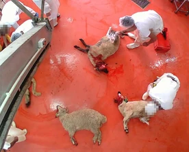 Schafe werden an den Ohren und Beinen geschleift, brutal auf den Boden geworfen und niedergedrückt. Ihr Hals wird gestreckt – ein Schlachthofmitarbeiter beginnt, an der Kehle herumzuschneiden. Erst nach mehrmaligem „Hin- und Hersäbeln“ beginnen die Tiere, stark zu bluten. Eine Betäubung erfolgt nicht. Qualvoll sterben die Schafe bei vollem Bewusstsein am Blutverlust. Amtliche Kontrollorgane sind nicht zu sehen. So schrecklich stellt sich die Mehrheit der mehrtägigen Langzeit-Videoaufnahmen aus einem Betrieb im Bezirk Korneuburg dar, die der VGT bereits vergangene Woche angekündigt hat.