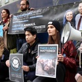 Protest vor kanadischer Botschaft wegen 30 Tage unbedingter und 12 Monate bedingter Haft, weil die beiden mit 100 anderen einige Stunden in einer Schweinefabrik gesessen sind