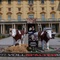 2 lebensgroße Stierfiguren vor dem Esterhazy Schloss, eine auf einem echten, ausrangierten Vollspaltenboden, die andere auf Stroh als Alternative