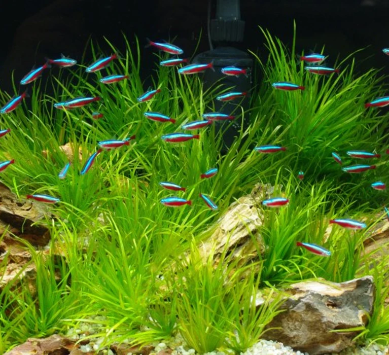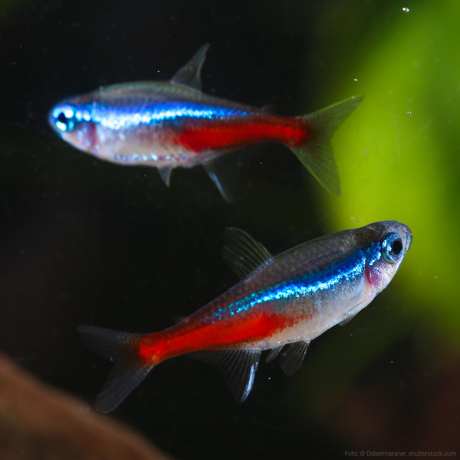 Untersuchungsfische waren Neonsalmler (Paracheirodon innesi), eine beliebte Süßwasser-Zierfischart, deren natürlicher Lebensraum im oberen Amazonasbecken liegt. Ein Neonsalmler wird 3,5 bis 4 cm lang, er zeigt ausgeprägtes Schwarmverhalten.