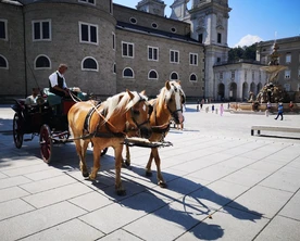 Trotz der andauernden Hitzewelle und Temperaturen jenseits der 30 Grad in der Salzburger Altstadt müssen die Fiakerpferde ihre unfreiwilligen Runden auf dem glühenden Pflaster drehen. Das Thermometer am Alten Markt zeigte am Dienstag zur Mittagszeit erdrückende 33 Grad Celsius im Schatten an.