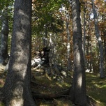 Dieser fast 20 ha große alte Hangmischwald wurde uns von einer Privatperson überantwortet. Es handelt sich um eine Fläche, die vom Gipfel eines Berges nach Westen zu einem Bach im Talboden reicht und dann noch etwa 100 m den sehr steilen Gegenhang hinauf zieht. Die Waldfläche entlang des Baches ist felsdurchsetzt und sehr jung. Der Rest des Waldes ist über 100 Jahre alt, vielleicht sogar über 200. Vereinzelte, bereits abgestorbene Birken künden an manchen Stellen davon, dass dort vor etwa 100 Jahren ein Kahlschlag gewesen sein muss.