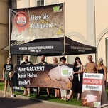 Schon 2023 nahmen Tierschützerinnen und Tierschützer des VGT das bekannte Kärntner Fest Gackern zum Anlass, um auf die Qualzucht-Problematik und auf die Massentierhaltung in der Hühnermast aufmerksam zu machen. Kürzlich wurde bekannt, dass dieses Jahr bei diesem Fest nur das Fleisch von Tieren aus verbesserter Haltung angeboten wird.