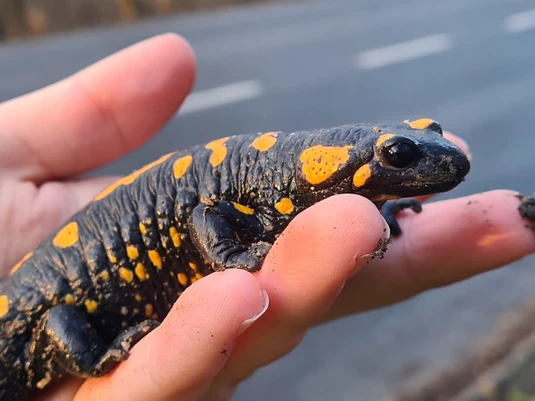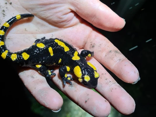 Der Feuersalamander hat eine Zeichnung, die so einzigartig ist, wie der Fingerabdruck eines Menschen. Sie kommt in der Natur immer nur 1 x vor. Salamander paaren sich schon im Herbst. Deshalb wandern nur die weiblichen Tiere. Die Tiere kommen schon als Larven lebend auf die Welt. Salamander bevorzugen außerdem das Fließgewässer.