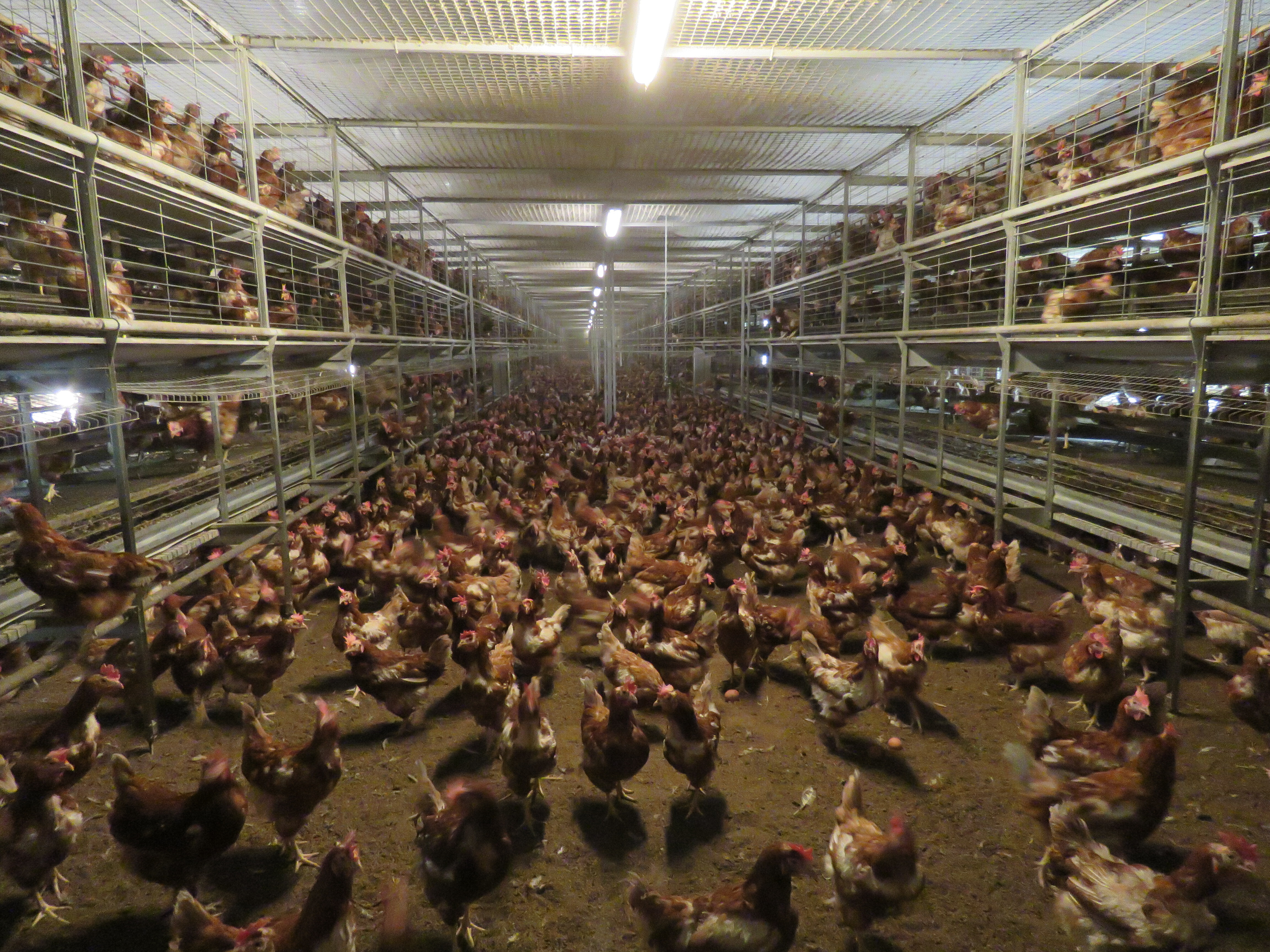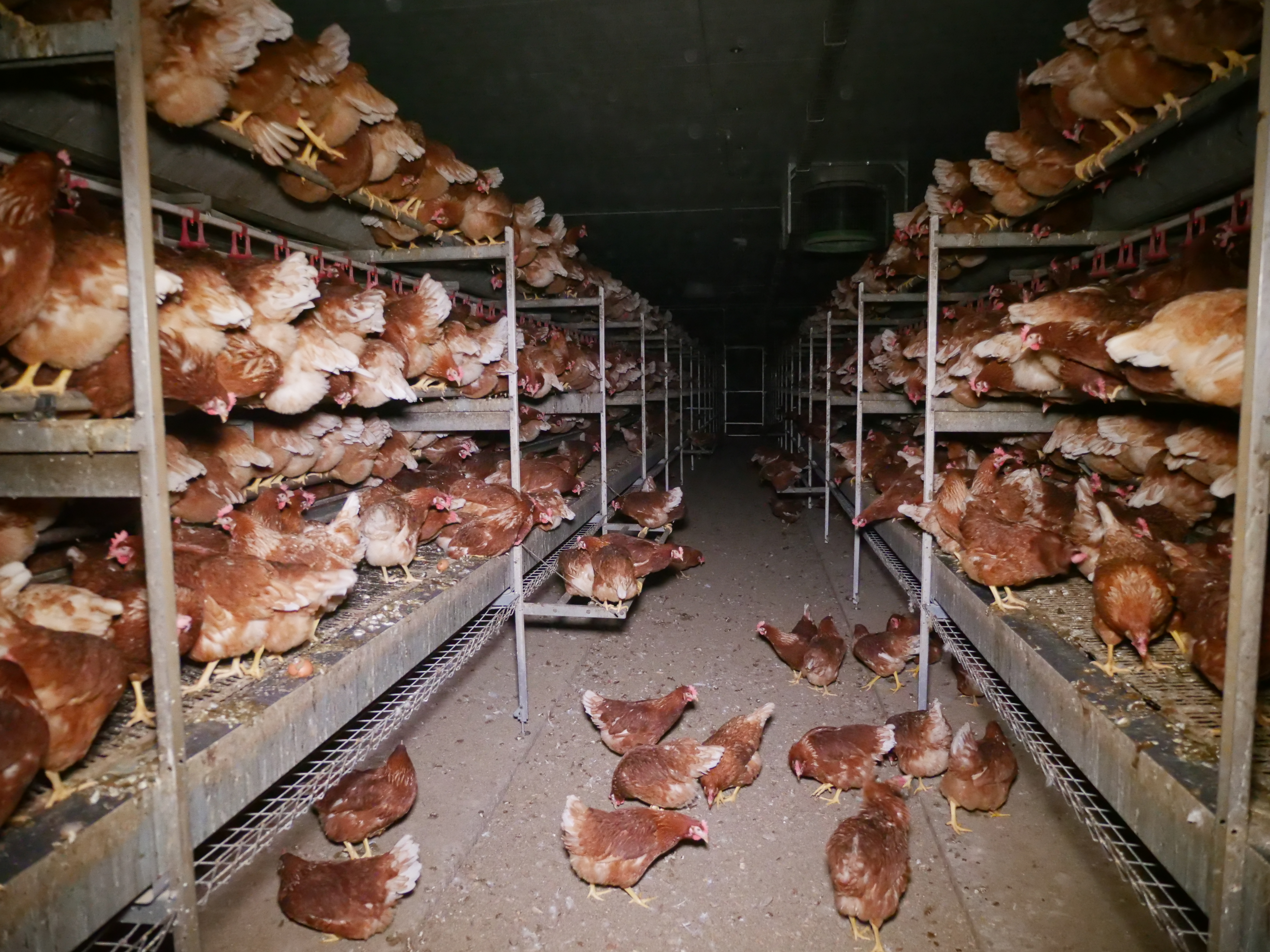 Der Welt-Ei-Tag findet jedes Jahr am zweiten Freitag im Oktober statt. Während das Ei an diesem Tag üblicherweise als wertvolles Lebensmittel gefeiert wird, lässt man die Hühner, die für die Massenproduktion von Eiern leiden, oft unerwähnt. Mehr als die Hälfte der österreichischen Legehennen, das sind in etwa 4 Millionen Tiere, müssen aktuell in Bodenhaltung leben. Diese stellt derzeit die aus Tierschutzsicht schlechteste legale Haltungsform für Legehennen in Österreich dar. Typischerweise sind Bodenhaltungen riesige Hallen. Der Boden ist zwar eingestreut, aber die Stallbodenfläche wird durch mehrere Etagen aus Gitterböden, die in die Halle eingestellt werden, in die Vertikale vergrößert. Dazu existieren zahlreiche verschiedene Systeme. Aus Tierschutzsicht essentiell ist die Unterscheidung zwischen verschließbaren und offenen Systemen.