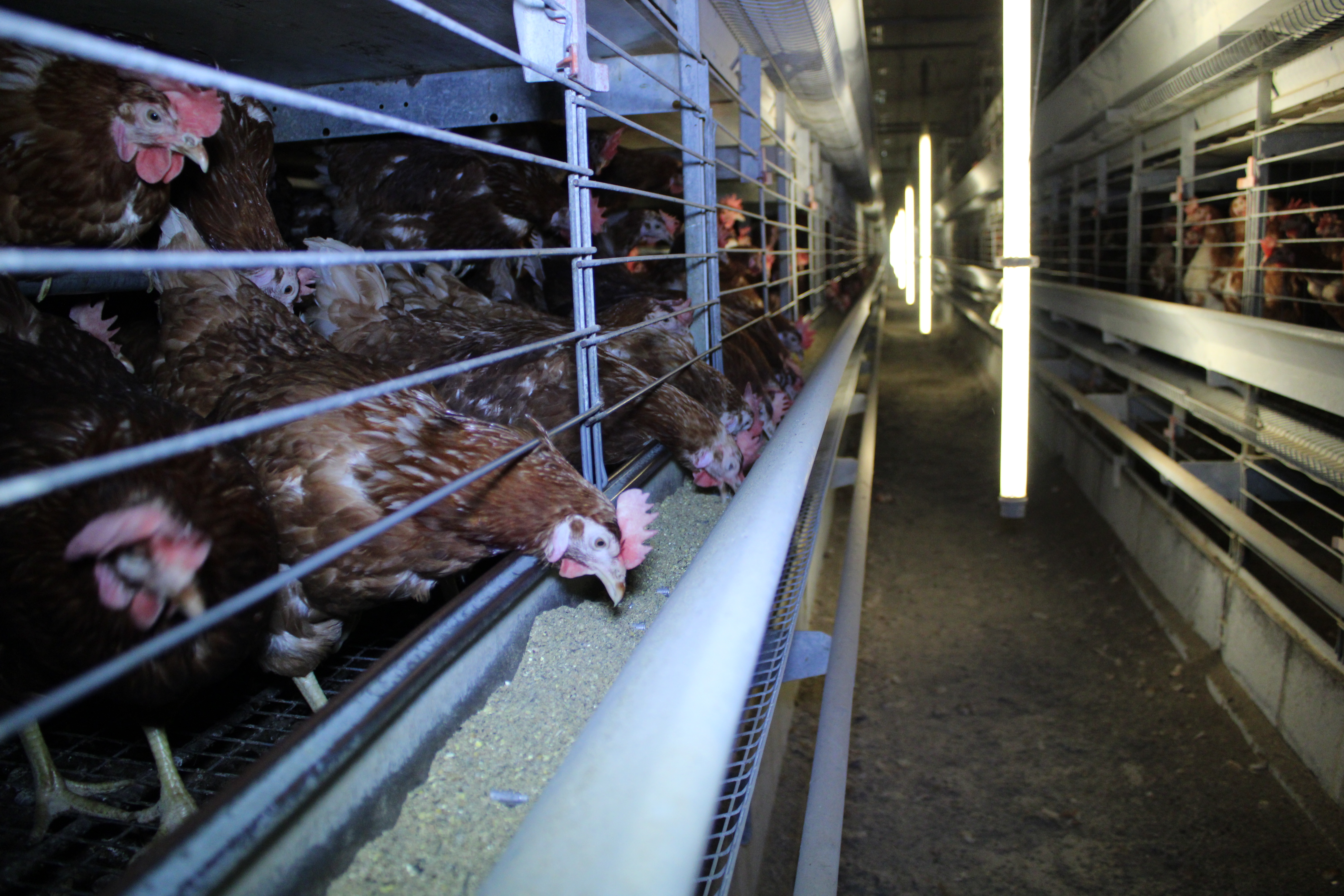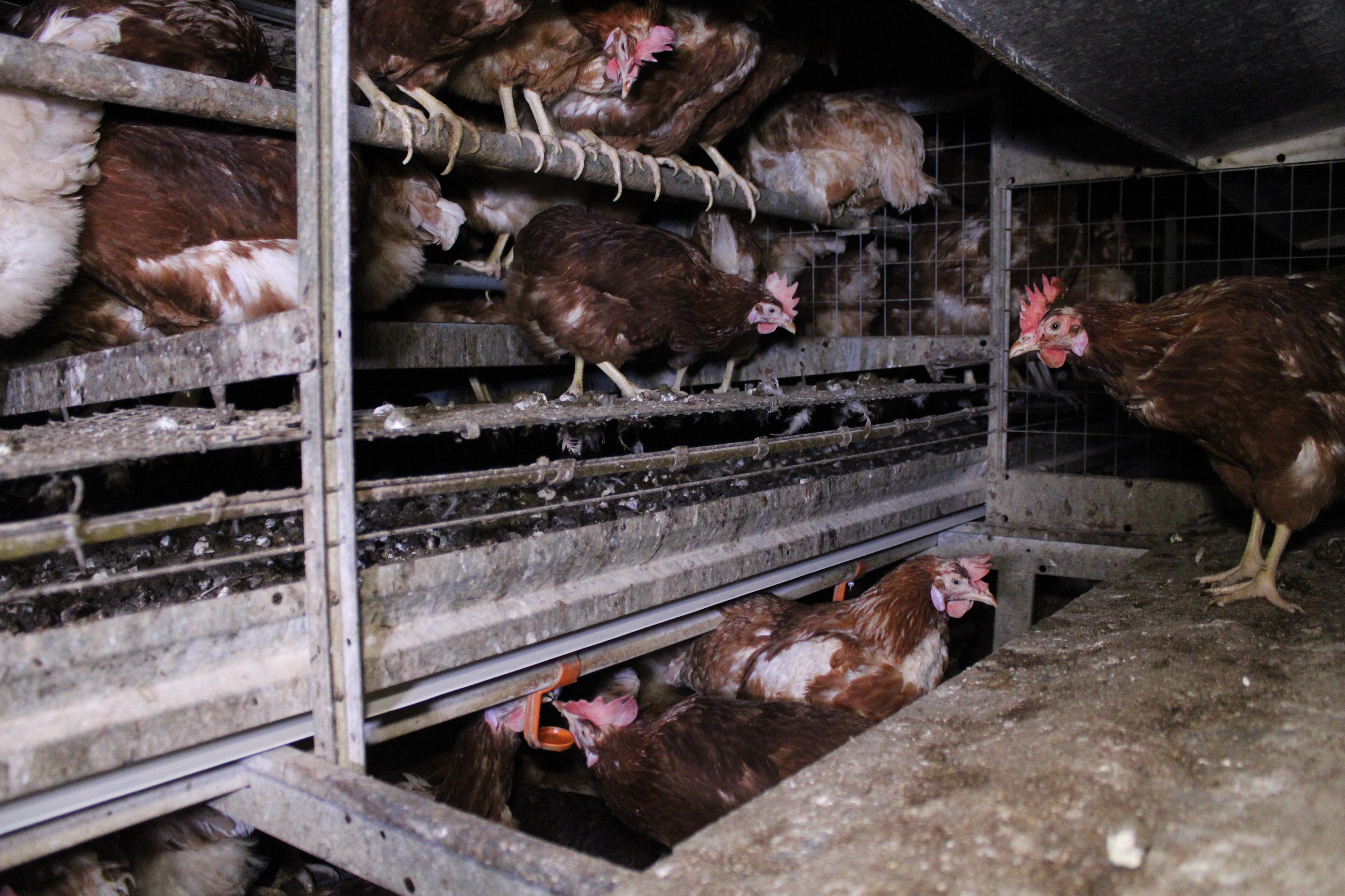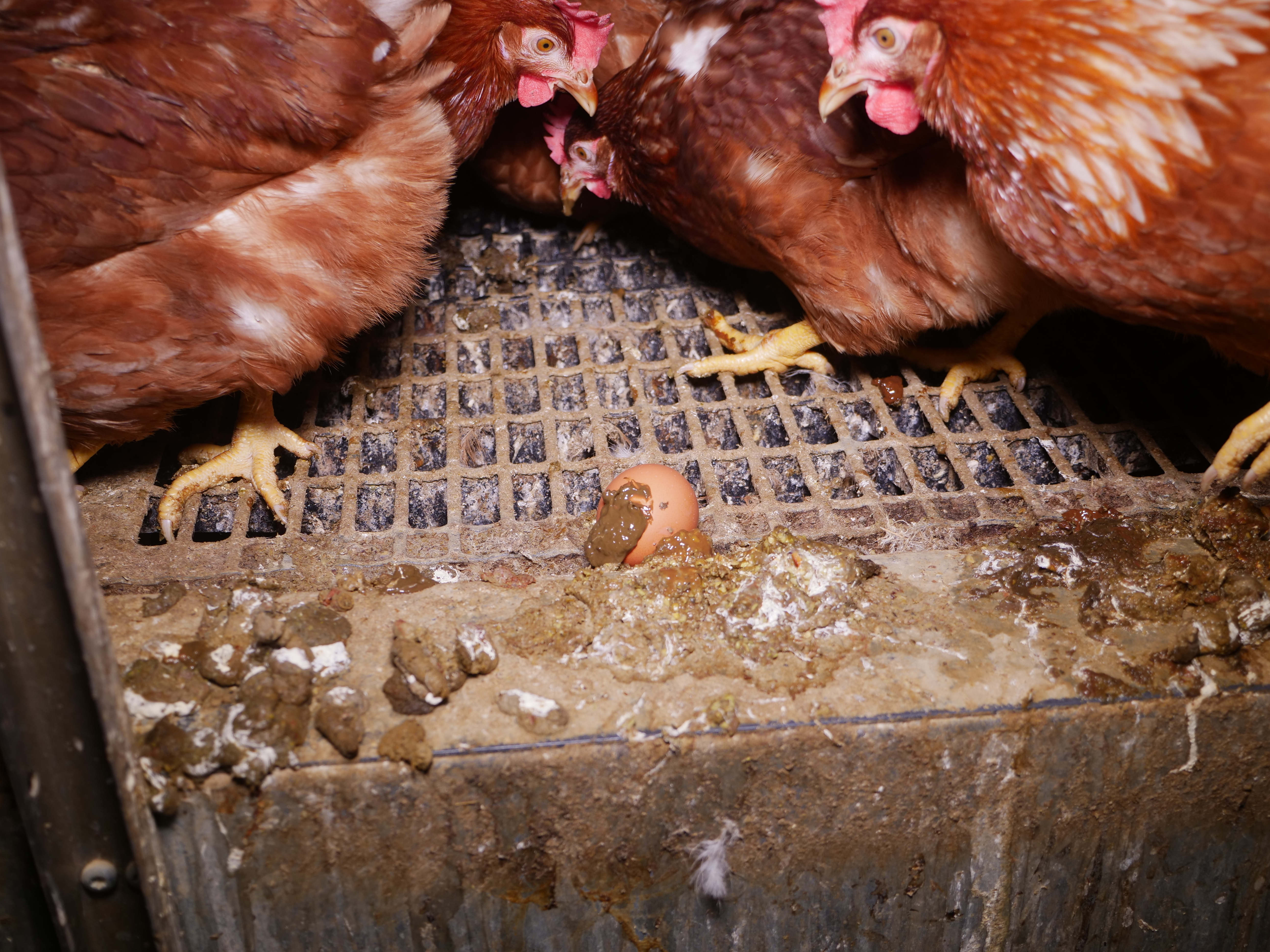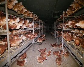 Offene Systeme erlauben etwas mehr Bewegungsfreiheit, da keine Etage durch Gitter abgesperrt wird. So können die Hühner z.B. auch gut von einer zur anderen Ebene flattern. Doch aktuelle Aufnahmen aus der Steiermark vom Oktober 2025 zeigen, dass die Bodenhaltung auch in offenerer Form alles andere als hühnergerecht ist. In einer Halle drängen sich tausende Hennen, oft ohne Tageslicht und vernünftige Beschäftigungsmöglichkeiten. Durch die vorherrschende Enge, Bewegungsmangel und unhygienische Bedingungen ist das Verletzungs- und Infektionsrisiko hoch.
