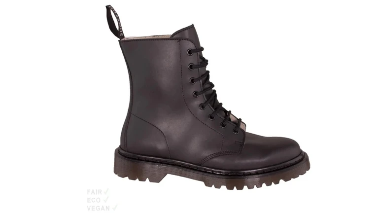 Shoezuu produziert vegane und faire Schuhe, die umweltfreundlich in Europa hergestellt werden. Wir verlosen ein Paar „8 Eye UK Boots Winter“ – super bequeme schwarze Schnürboots mit kuschelig warmem Innenfutter aus recyceltem PET. Die Stiefel sind erhältlich in den Größen 37 bis 46.