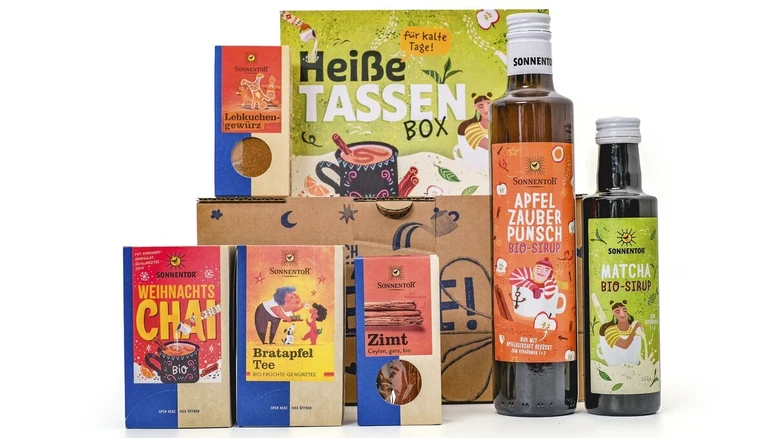 Ein Geschenkkarton voller toller Sonnentor-Produkte, um in der hektischen Jahreszeit zu entspannen. In der Themenbox "Heiße Tassen" findest du ein BEST-OF der Heißgetränke von Sonnentor: verschiedene winterliche Tees, Zimt und Lebkuchengewürz sowie Punsch- und Matcha-Sirup! Sonnentor steht für regionale und fair-gehandelte Bio-Produkte, direkten Handel und ökologische Verpackungen.