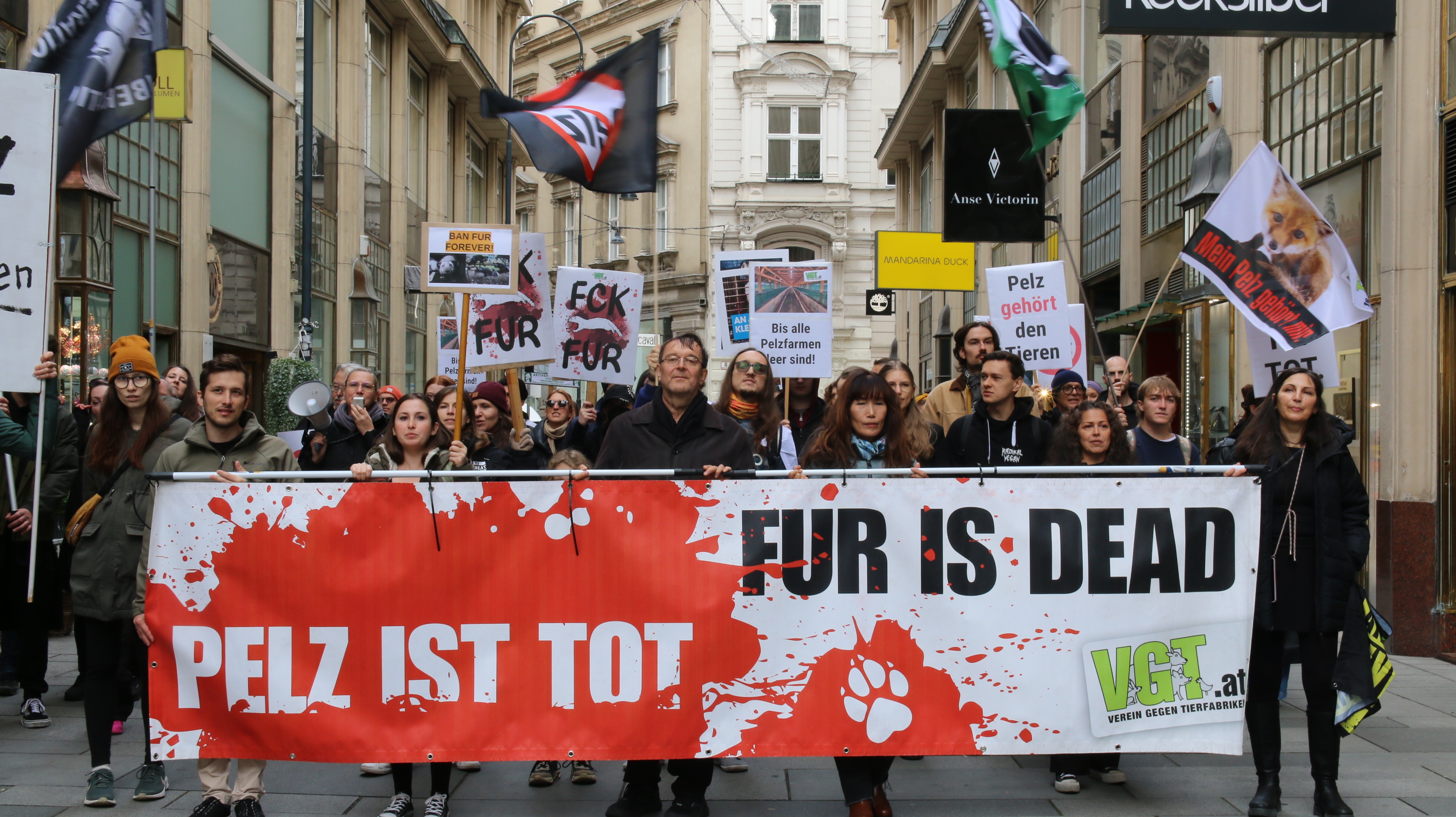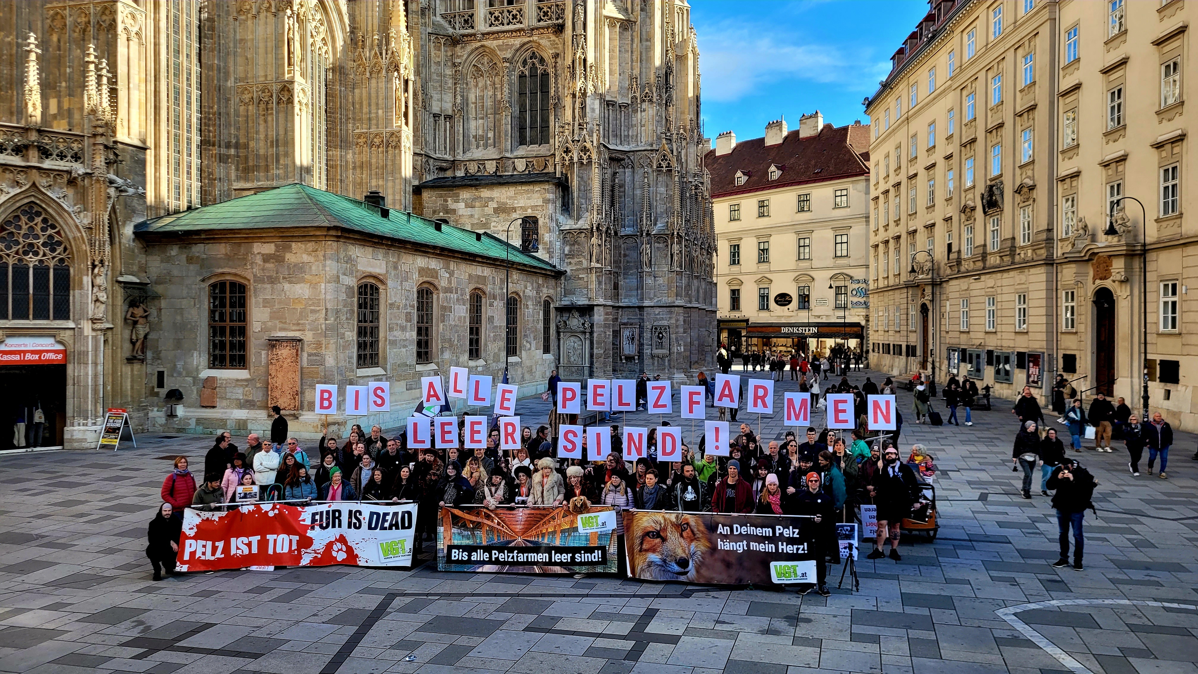 Wie jedes Jahr veranstaltete der VEREIN GEGEN TIERFABRIKEN auch 2025 einen Demomarsch, um gegen das Leid der Pelztiere und für ein Ende des Pelzverkaufs zu demonstrieren.