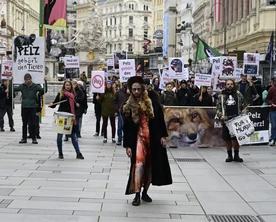 Am Samstag, dem 25. Oktober, gingen 200 Menschen gegen den Pelzverkauf in Wien auf die Straße.