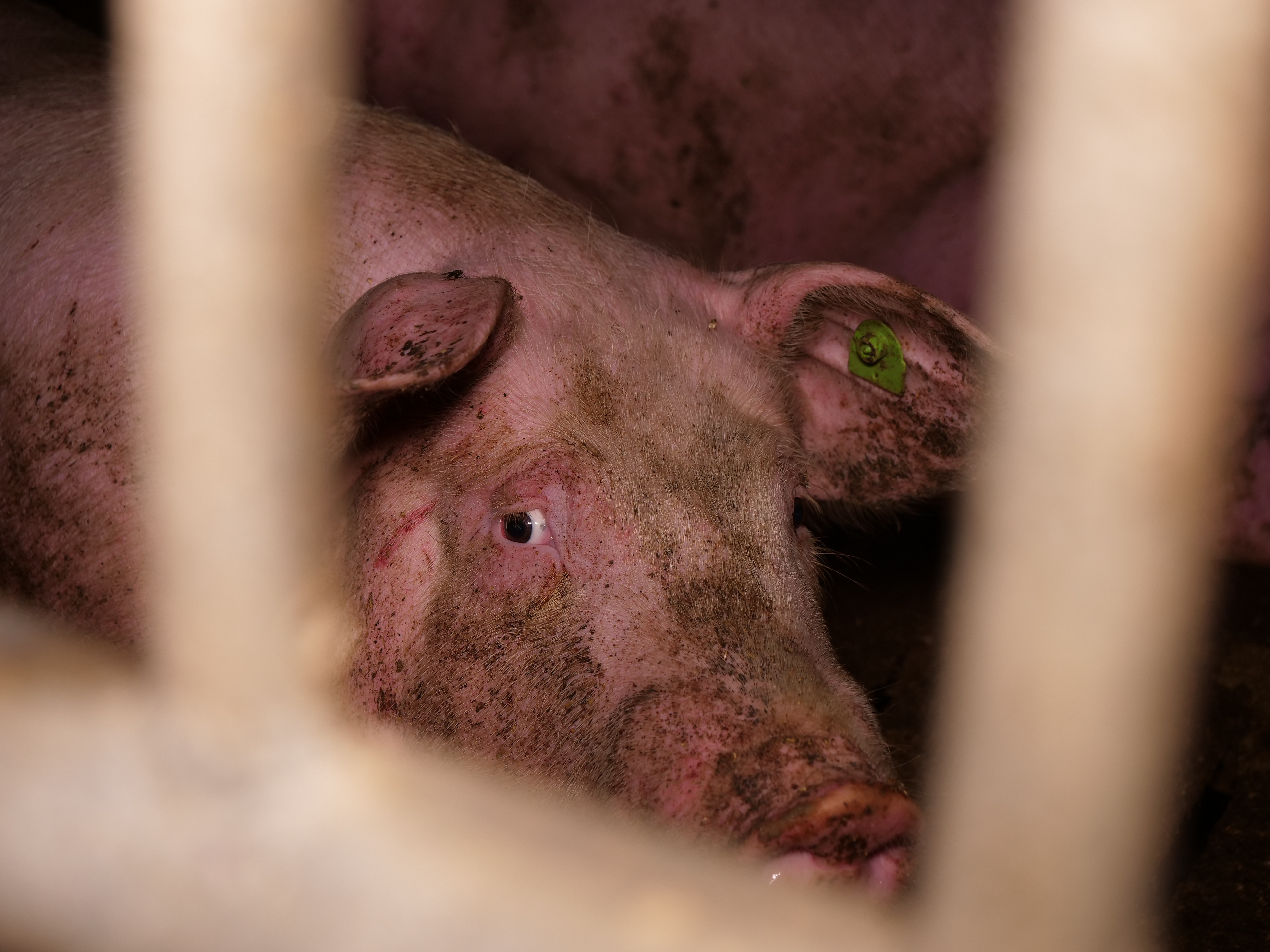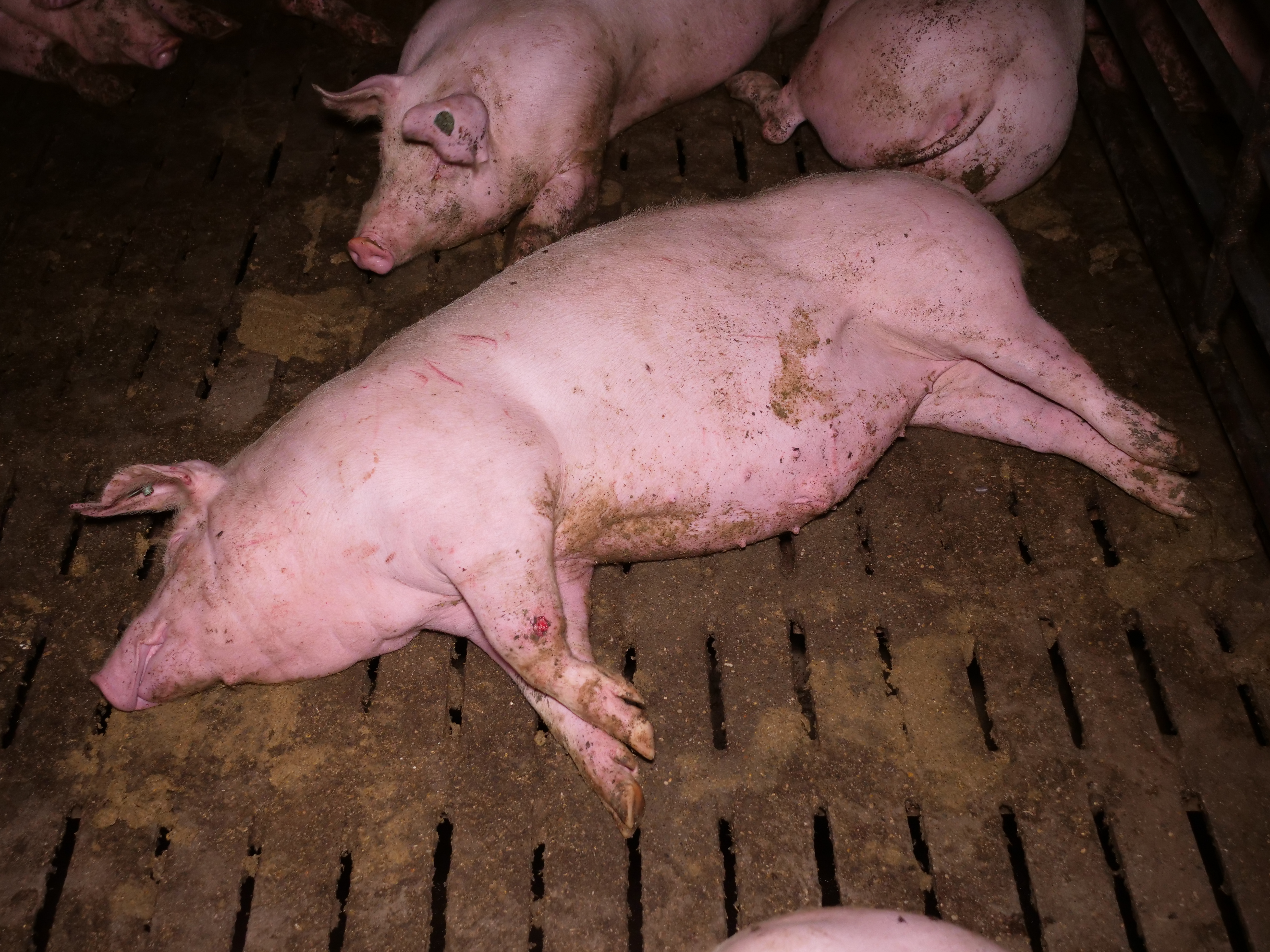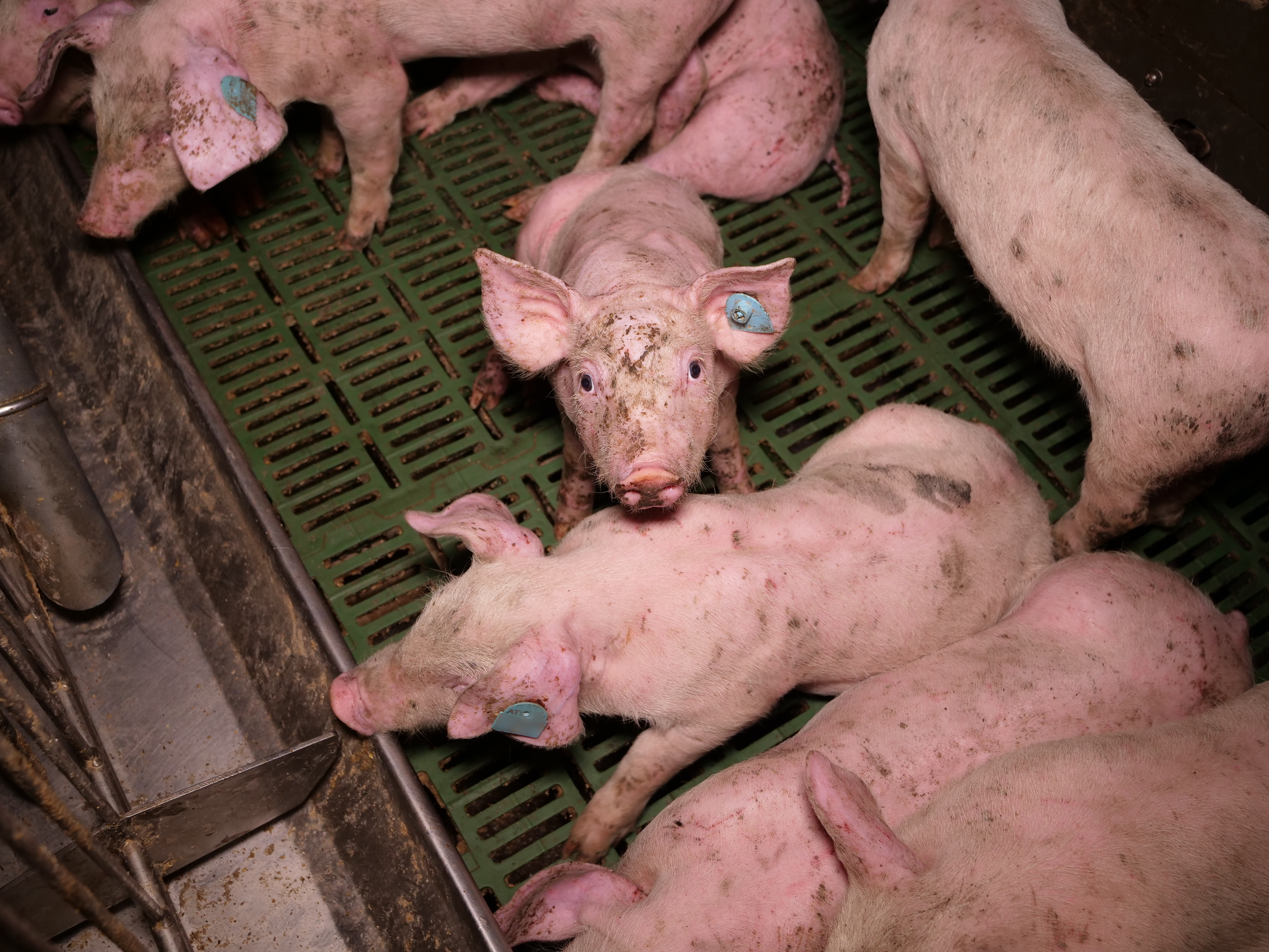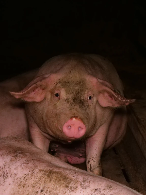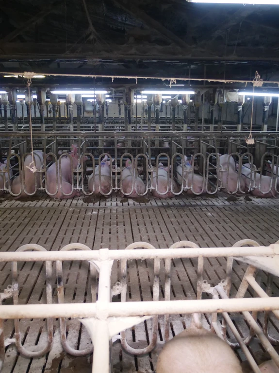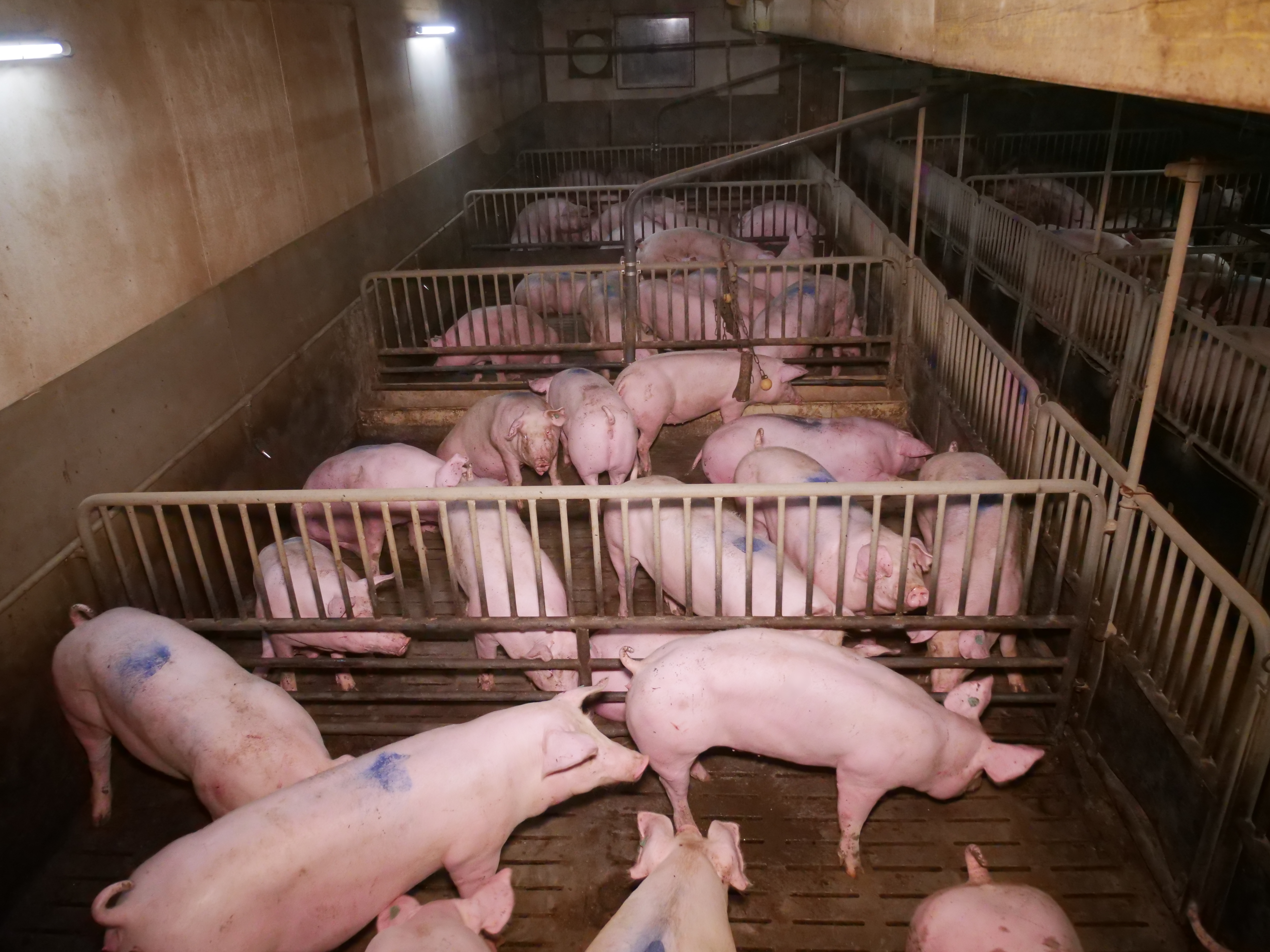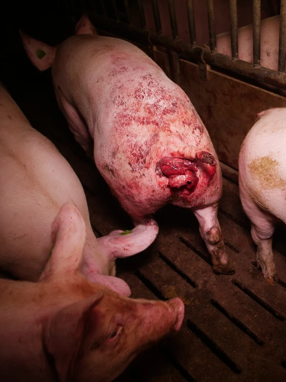 Öffentlich wird die riesige Anlage als Vorreiter in Sachen „Tierkomfort” präsentiert, wo „Tiergesundheit” vermeintlich großgeschrieben wird. Die Foto- und Videoaufnahmen zeichnen ein ganz anderes Bild. Viele Schweine haben Eingeweidebrüche und Verletzungen. Etlichen Tieren wurden die Schwänze von Artgenoss:innen blutig gebissen. Einen besonders dramatischen Fall stellt ein Schwein mit massivem Darmvorfall dar, dessen Afterbereich durch Kannibalismus von anderen Schweinen bereits schwer verletzt wurde. Zerfetzte Darmstücke hängen aus dem After des Tiers, während es in der engen Bucht versucht, den anderen Schweinen zu entkommen. Mehr als 7.000 Schweine werden über mehrere Hallen verteilt in diesem Betrieb gemästet.