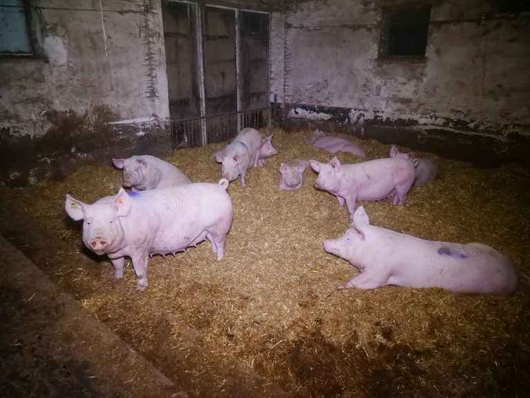 Der Betrieb stellt sich als Vorzeigestall dar. Vor allem die Zuchtbereiche werden dafür in den Vordergrund gerückt, dabei haben nur wenige Buchten Einstreu. Die allermeisten Schweine leben auf Spaltenboden ohne Stroh.