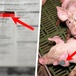 Aufnahmen von Dokumenten in der Zuchtanlage („Sauenkarten“, auf denen Daten zum Mutterschwein und den Ferkeln festgehalten werden) zeigen ebenfalls den Betriebsnamen.