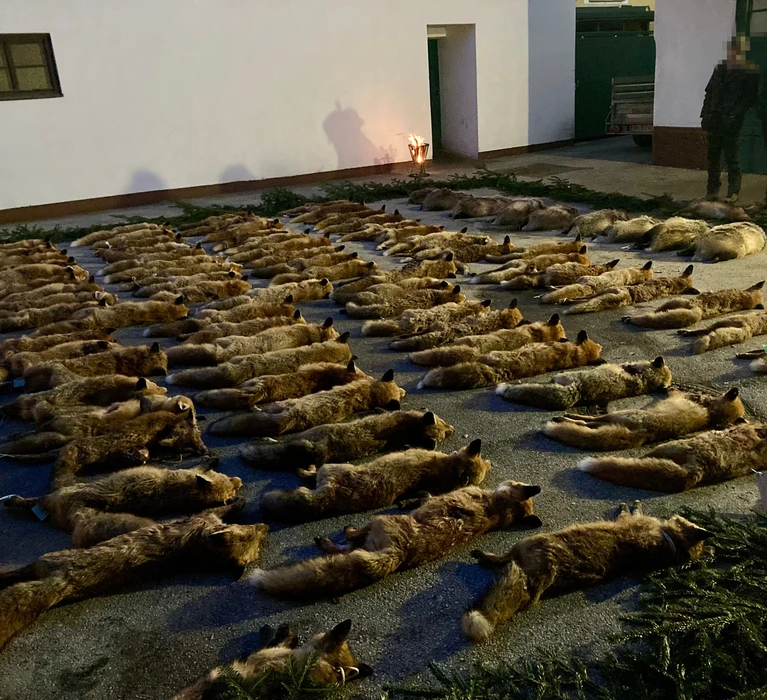 Für Menschen mit normalem ethischen Empfinden ist es kaum erträglich. In Uttendorf bei Braunau am Inn haben am 28. Februar 2026 abends zahlreiche Jäger:innen fast 200 tote kleine Beutegreifer stolz auf den Asphalt gelegt und sich selbst dafür gefeiert, wie der VGT zusammen mit RespekTiere dokumentieren konnte. Angekarrt sind die Tiere mit Scheibtruhen worden und dann lieblos auf den Boden geworfen. „Stücke“ sind für die Jägerschaft diese Individuen, die sie abknallen wollen, wie in ihrer Ankündigung für diesen makaberen Event steht. Als handelte es sich nicht um Lebewesen wie Du und ich, aus Fleisch und Blut, mit einer Freude am Leben, mit einer Liebe für ihre Partner:innen und ihre Kinder. Völlig sinnlos aus dem Leben gerissen! Und das zu einer Zeit, in der einige der Tiere durchaus bereits schwanger sein können, oder Partner schwangerer zukünftiger Mütter sind, die jetzt ohne die Hilfe ihres Partners auskommen müssen. Mit den getöteten Tieren bei diesem Massaker starben daher sehr wahrscheinlich auch einige Kinder mit.