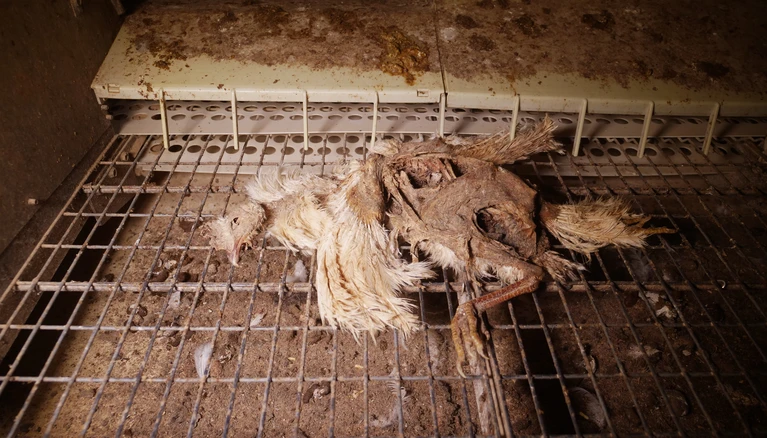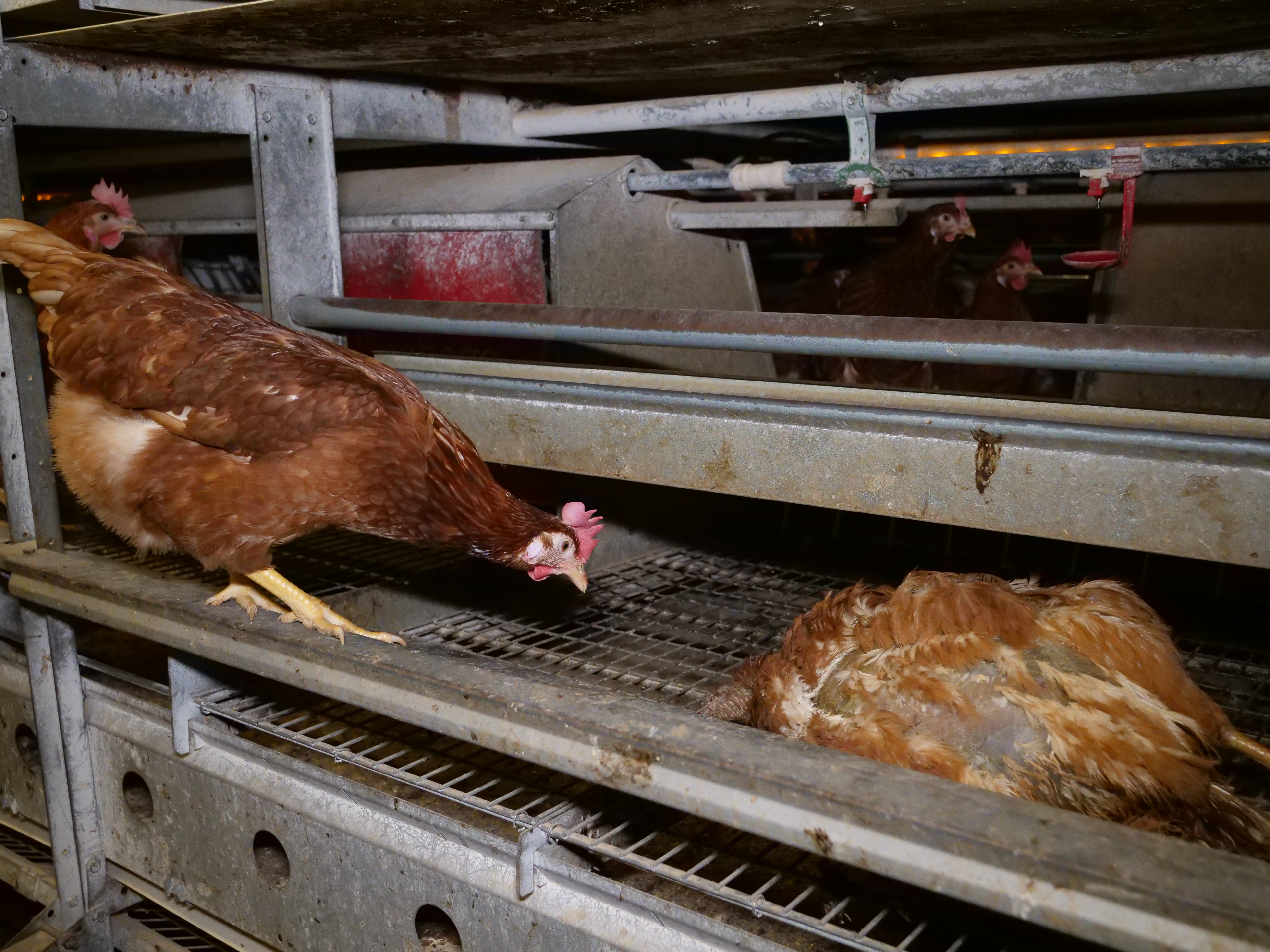 Die aktuellen Bilder aus dem Frühjahr 2026 zeigen mehrere tote und bereits verwesende Tiere. Studien zufolge sterben allgemein 2-12 % der Legehennen bereits im Legebetrieb3.