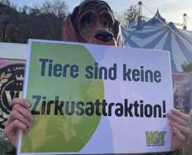 Am Samstag, 28. März, fand der erste Tierrechtstag in diesem Jahr in Salzburg statt. Nach einem spannenden Programm, von Tierrechten über Vorstellung der VGT-Kampagnenarbeit bis hin zu Bürger:innenrechten, fand im Anschluss die praktische Umsetzung in Form einer Demo vor einem Zirkus in Salzburg statt.