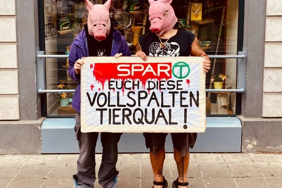 Für ein Ende des Verkaufs von Vollspaltenboden-Schweinefleisch bei SPAR