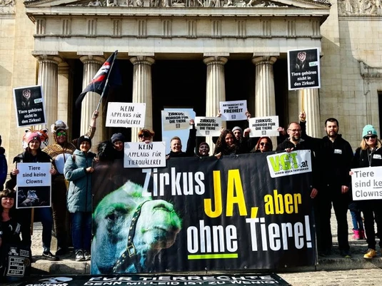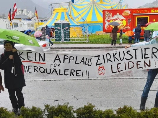 In Österreich ist die Haltung von Wildtieren im Zirkus verboten. Doch erlaubt bleiben Aufführungen mit Heimtieren wie Pferde, Ponys, Esel, Hunde, Katzen, Schweine, Kaninchen, Tauben u.v.m. Sogar Kühe oder Enten müssen in für sie sehr stressigen Vorführungen Dressurakte vollbringen! Dass die häufigen Ortswechsel, verbunden mit anstrengenden Transporten und Haltungen mit wenig oder gar keinem Auslauf, nicht artgerecht sind, liegt auf der Hand.