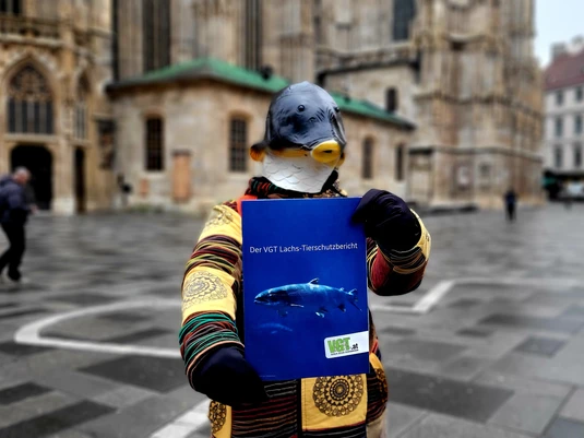 Die Fische in Österreichs Flüssen sind bedroht. Darüber informiert der VEREIN GEGEN TIERFABRIKEN (VGT) bei einer Tierschutzaktion. Aktueller Anlass ist der diesjährige Internationale Tag der Flüsse.