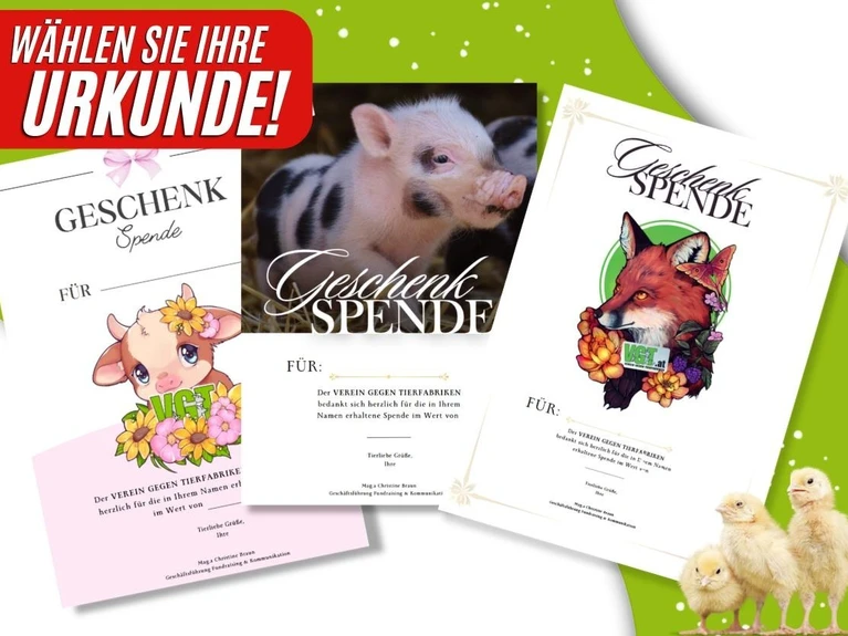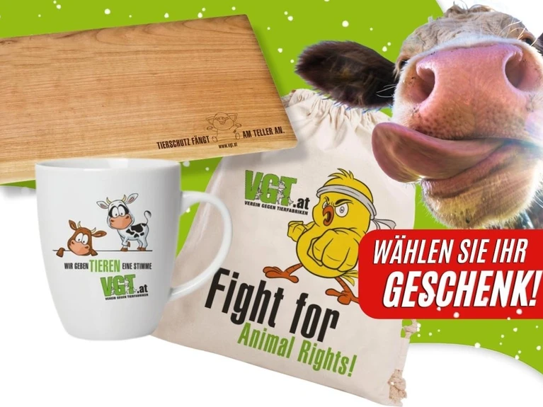 Als Dankeschön erhalten Sie eine persönliche Tierschutzurkunde mit Widmung und ab 25 Euro gibt es sogar ein exklusives Geschenk dazu. Wählen Sie zwischen einem Häferl, Turnbeutel oder unserem nachhaltigen Frühstücksbrettchen.