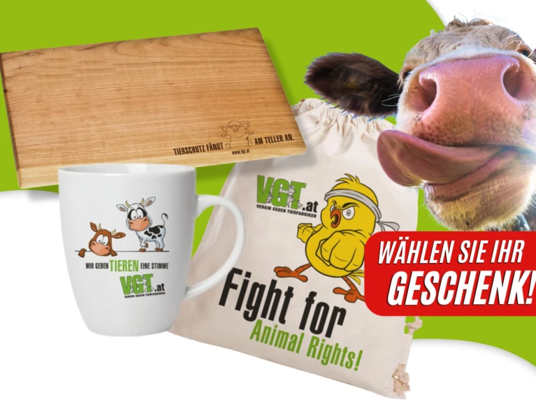 Als Dankeschön erhalten Sie eine persönliche Tierschutzurkunde mit Widmung! Ab 25 Euro (einmalig) gibt es sogar einen Schlüsselanhänger (illustriert von Jessica Schwarz) dazu. Ab 19 Euro im Monat verschenken Sie eine Tierschutzpatenschaft mit exklusivem Patenschaftsgeschenk: Sie können direkt im Spendenformular zwischen einem Häferl, Turnbeutel oder unserem nachhaltigen Frühstücksbrettchen wählen.